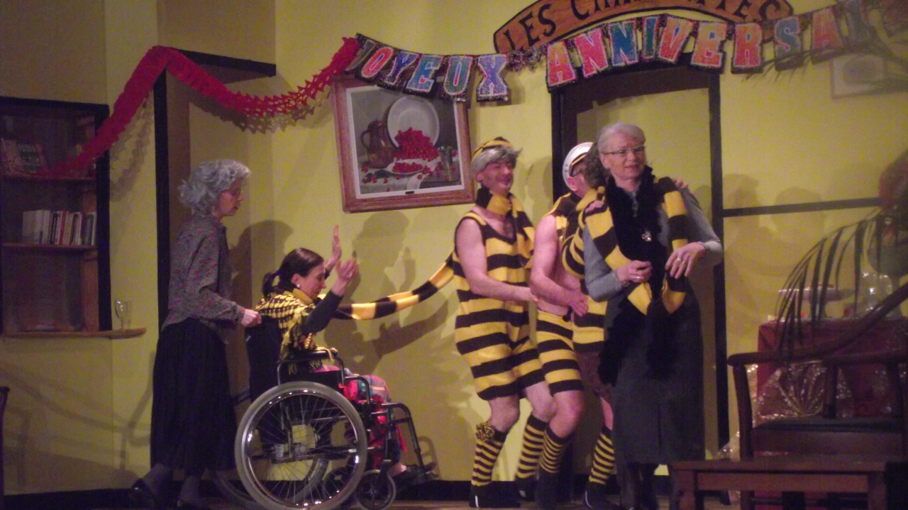| Mise en scène : Loïc Désille | Résumé : Dans une maison de retraite aux résidents hauts en couleurs, la police introduit, à l’insu de tous, une « Marie Pervenche » de fortune, afin d’éclaircir le mystère des décès inattendus et inexpliqués qui se produisent chaque mois, depuis plus d’un an, chez les plus fringants des pensionnaires, avec la régularité d’un métronome. | d’Andrée Robin-Ligot |